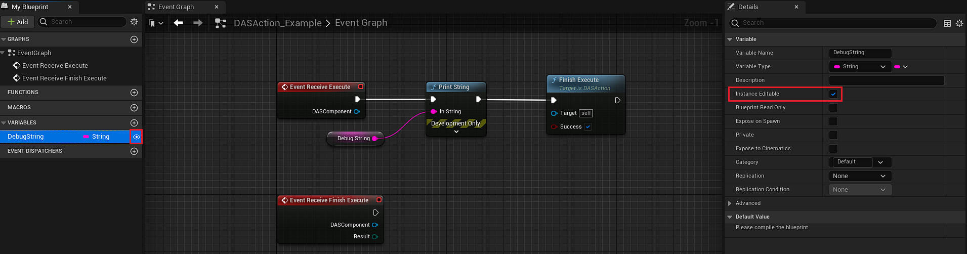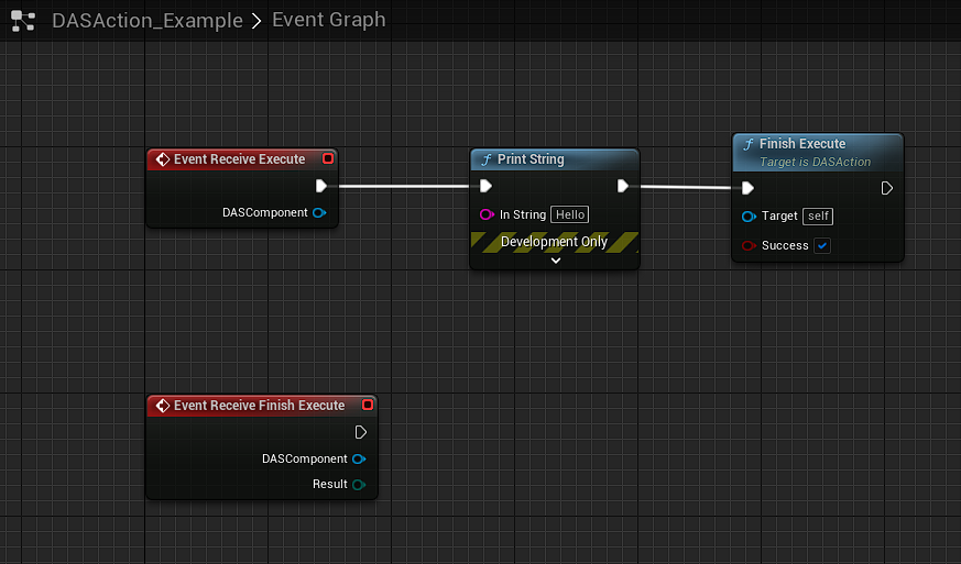 Action must implement event ReceiveExecute and call function FinishExecute when it ends.