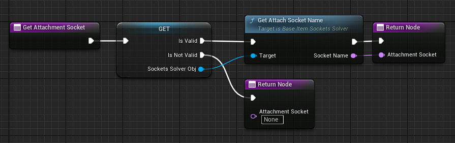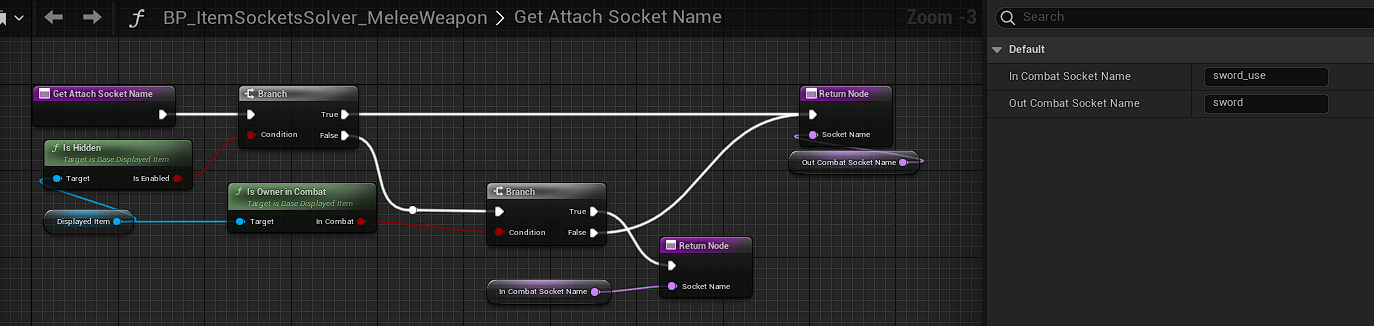 Example implementation of GetAttachSocketName function on SocketsSolver_MeleeWeapon looks like that