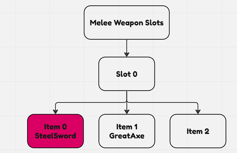 In this example owner would start with Steel Sword because it is at item Index 0 and ActiveItemIndex is 0