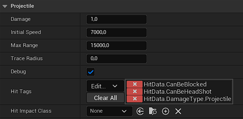 Guns system comes with projectiles classes, these are used as bullets spawned on gun fire to apply damage to hit actors.