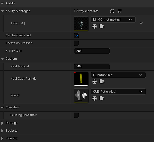 This ability plays anim montage and heals owner once for specified value.