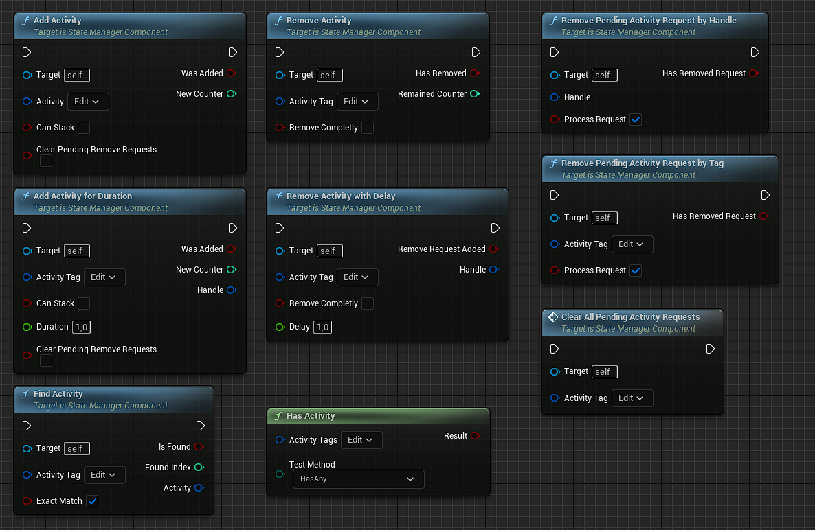 We can set Activity value through component, check if it’s active or get notified when any activity has changed through OnActivityChanged event dispatcher.