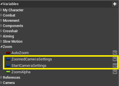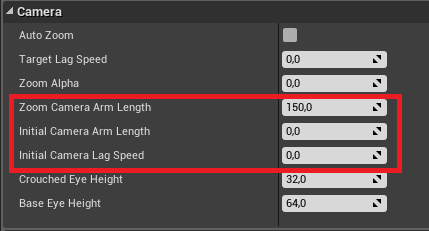Created 3 new variables ZoomCameraArmLength, InitialCameraArmLength and InitialCameraLagSpeed. (All)